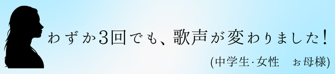 先日は、娘のレッスン、ありがとうございました。まだ3回なのに...少しずつ、娘の声が変わっているのが、素人の私でもわかります!なにより、楽しそうに歌っている(家でずっと歌っています)娘の様子を見ると、私も嬉しくなります。